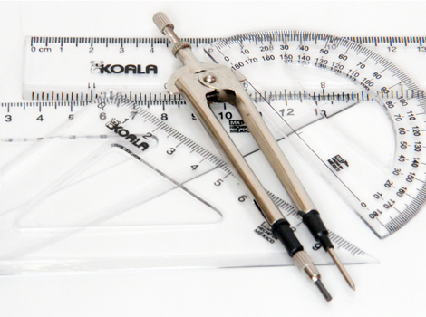 Regla de 30cm + Escuadras medianas + Compás de metal