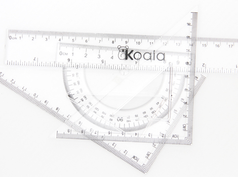 Regla de 20cm + Escuadras medianas de pl‡stico translucido con medidas en centr’metros impresos en color negro.